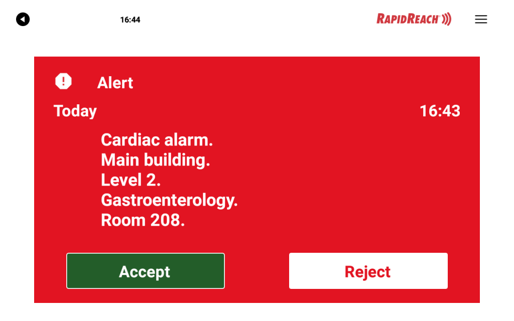 Om larmmeddelandet kräver en kvittens visas svarsknappar upp på skärmen.