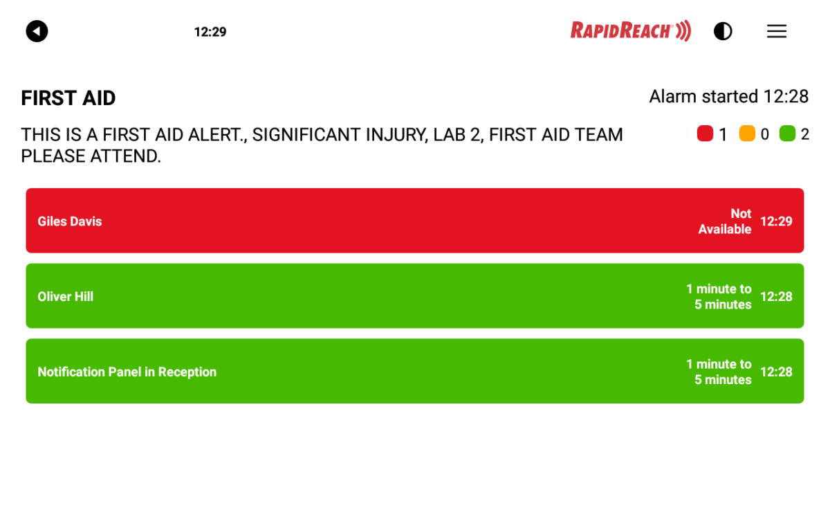 Efter att larmet har aktiverats visar Notification Panel upp i realtid vem som har fått meddelandet och om de har kvitterat.
